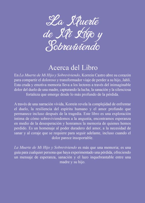 “The Death of My Son and Surviving” is a powerful memoir that candidly details a mother’s experience of losing her child. Korrein Castro shares her journey through grief, highlighting the pain, the healing process, and the strength that emerges from love.